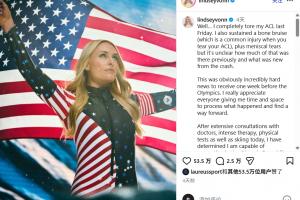 在上周林赛·沃恩刚刚遭遇了左膝前交叉韧带撕裂的重伤,但她仍然选择带伤坚持参加本届冬奥会。4天前,林赛·沃恩社媒发文,表示虽然自己受伤,但只要有一丝机会就不会放弃。